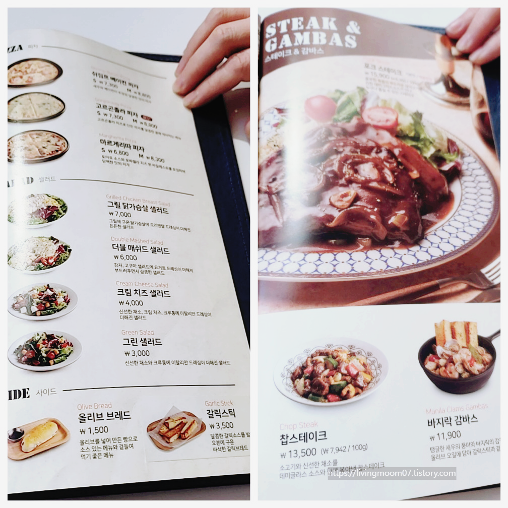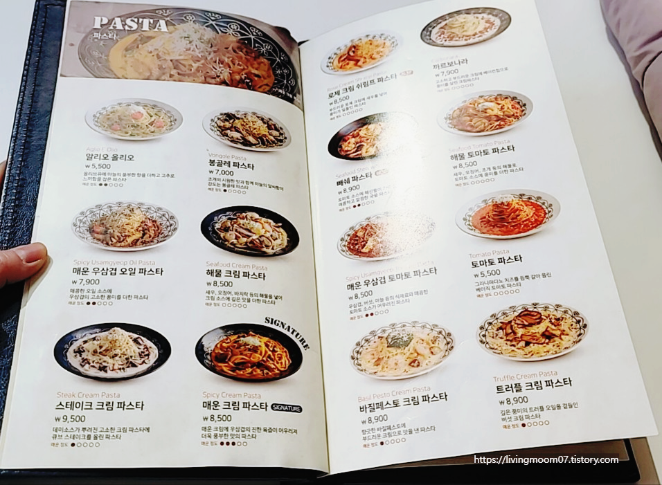 다른 곳에 비해서 너무 저렴했던 메뉴들... 보통 파스타하면 10,000원은 훌쩍 넘는 곳이 대부분인데 5,500원부터 시작하고 다른 메뉴도 너무 저렴하게 측정되어 있어서 이게 맞나.. 하고 있다가 백종원선생님 프랜차이즈였지 라는 생각이 번뜩..! 떠올라서 급 납득이 되었습니다.
