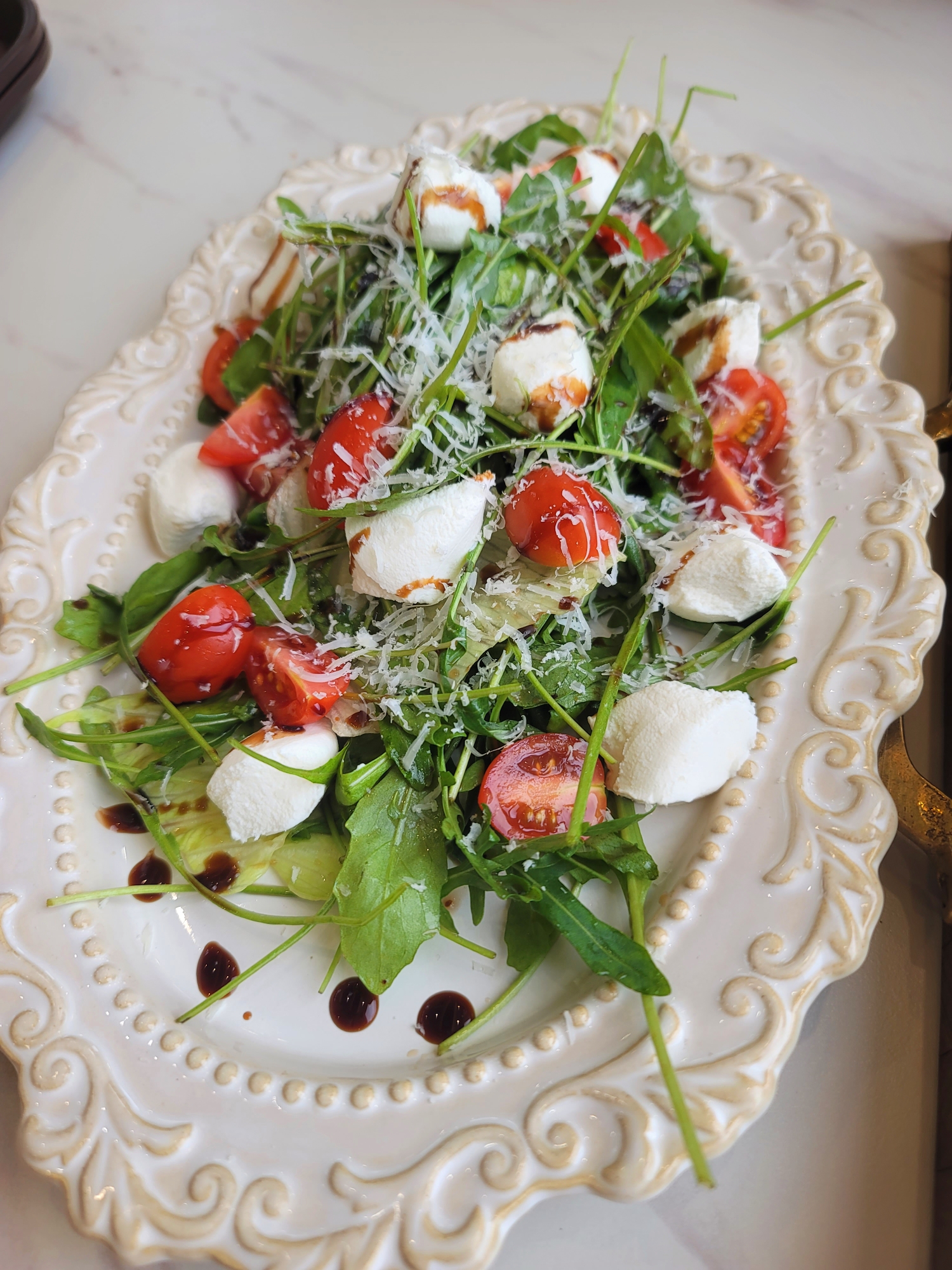바비큐플레이트의 맛을 한층 올려주었던 루꼴라리코타치즈샐러드.