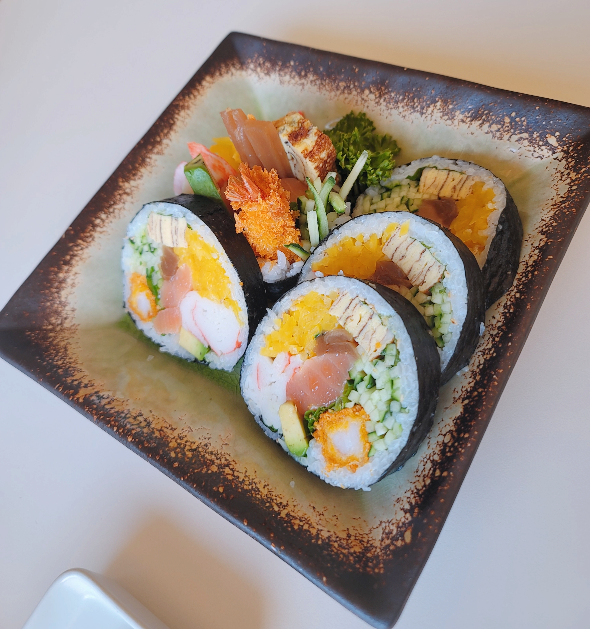 달의 일상.. 인생 후토마키를 처음 접하는 거라서 크면 얼마나 크겠어하고 있었는데.. 한 조각이 거의 내 손바닥 만한 김밥이 나와서 조금 놀랬다. 메뉴판에 후토마키 재료가 쓰여있어서 좋았는데, 후토마키 재료로 김, 박고지, 고추냉이, 차조기잎, 숙성 생연어, 계란, 통깨, 단무지, 오이, 게살, 유부, 새우튀김, 초대리밥으로 구성되어 있다고 한다. 먹기 전에 각각 안 좋아하는 음식이나 알레르기 있는 음식을 확인하고 먹을 수 있다는 점이 좋았다고 생각한다. 후토마키 재료 중 생소한 재료.. 박고지가 무엇인지 알아보았는데, 우리가 흔히 아는 흥부와 놀부 전래동화에서 나오는 박의 속을 파내어 말린 음식이라고 한다. 박고지에 대해 더 알아보았더니 섬유질이 풍부해서 장건강에 좋고, 위를 보호하여 소화를 촉진시켜 배설작용에도 효능이 있다고 한다. 또는 동의보감에서는 박이 열일 내리고 갈증을 해소해주는 역할을 하고 면역이 좋지 않은 임산부나 어린이에게 좋은 영향을 준다고 한다.