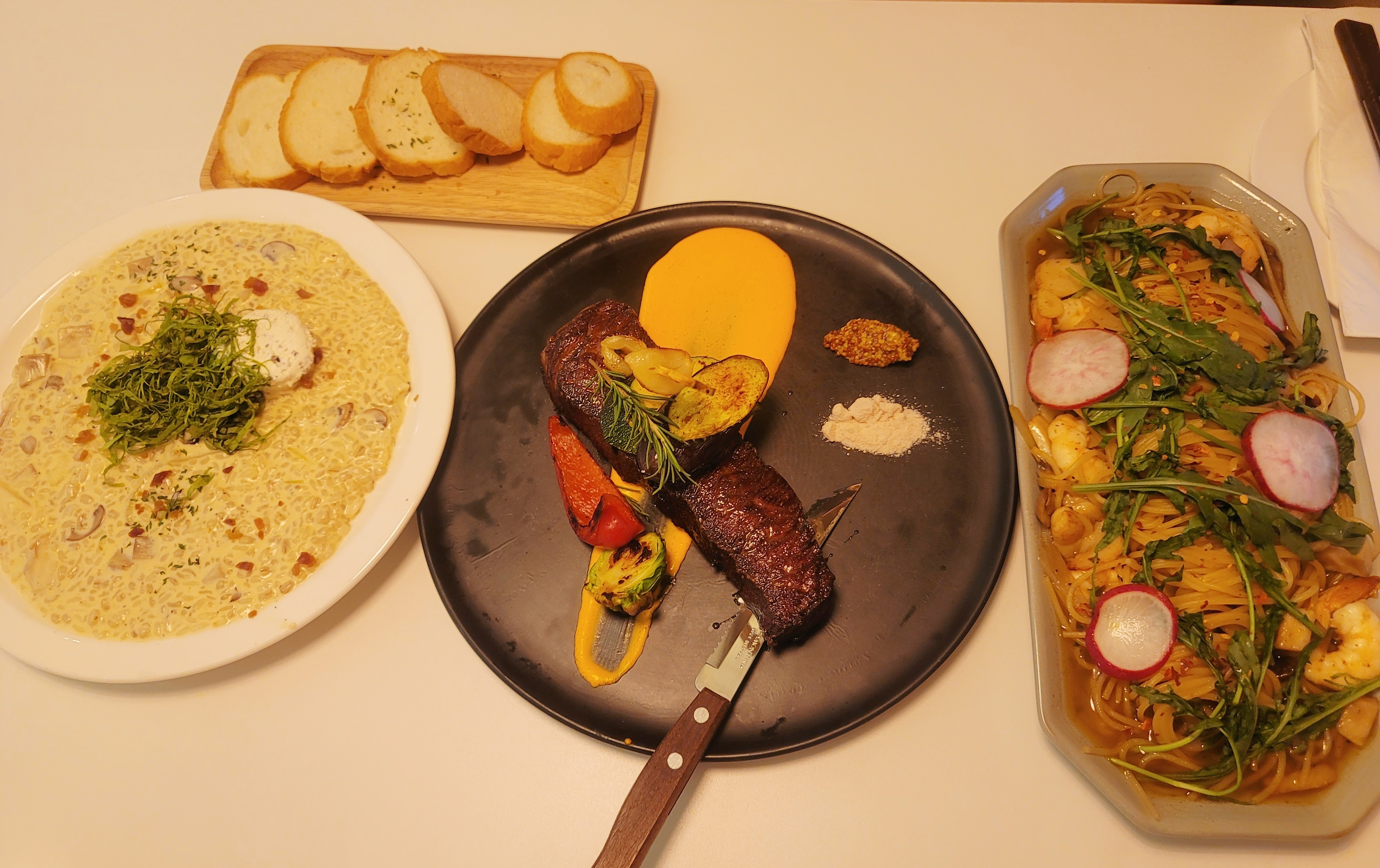 순서대로 트러플크림리소토, 살치살스테이크, 감베로니오일파스타이다.