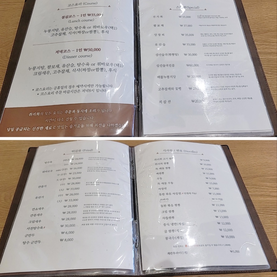 일반 중식 외에 중식 코스요리도 즐길 수 있는 취리희!!