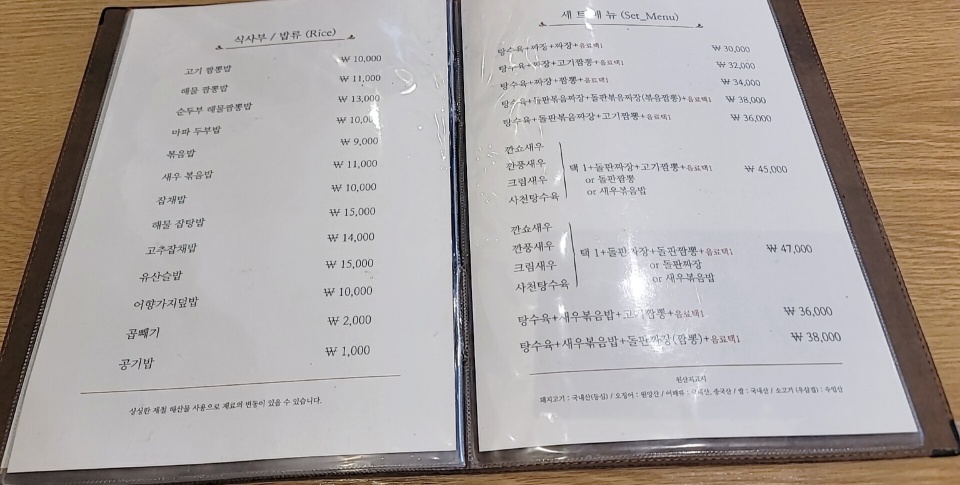 매장도 분위기 좋고 넓고 쾌적해서 특별한 날 와서 코스요리를 즐기는 것도 좋을 것 같다. 블로그를 찾아보니 돌판볶음짜장이 인기메뉴라는 정보를 얻고 우리는 취리희 짬뽕(10,000) + 돌판볶음짜장면( 11,000) + 미니탕수육(18,000)을 주문하였다.