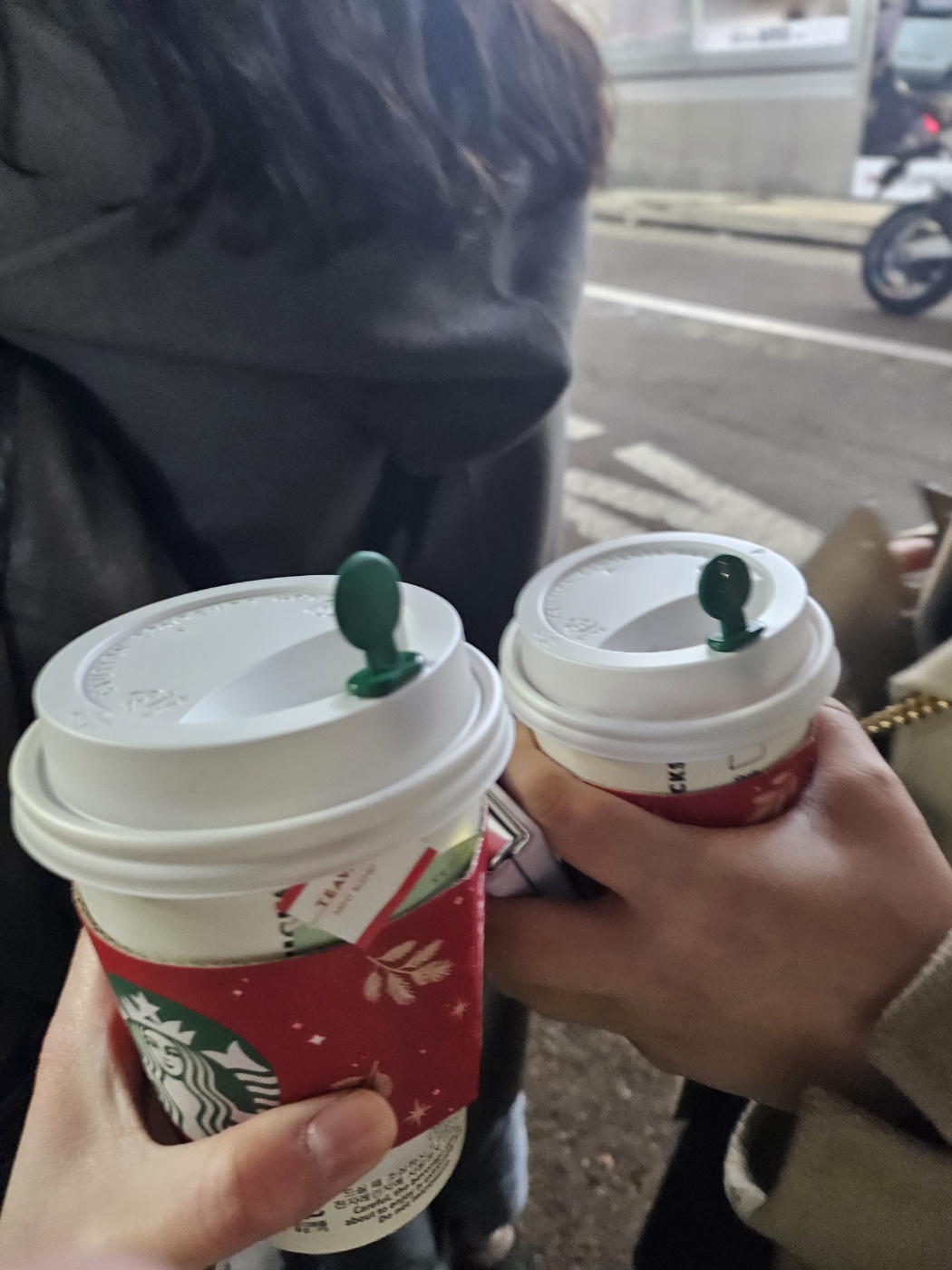 2시간 30분 지났을 무렵 두번째 줄 중간쯤. 이러다 얼어 죽겠다 싶어서 친구가 주변 카페에서 따뜻한 유자민트티를 사다 줬는데 진짜.. 생명수가 다름없다. 따뜻한 티타임을 하면서도 그냥 다른 곳 갈까 싶어서 주변 방어맛집을 찾아 지도를 여러 번 켰다 닿았다 여러번 하였으나 방어철이라 그런지 주변 횟집도 웬만한 웨이팅이 있었고 지금까지 기다린 게 너무 아까워서 오기로 다시 열심히 줄을 섰다.