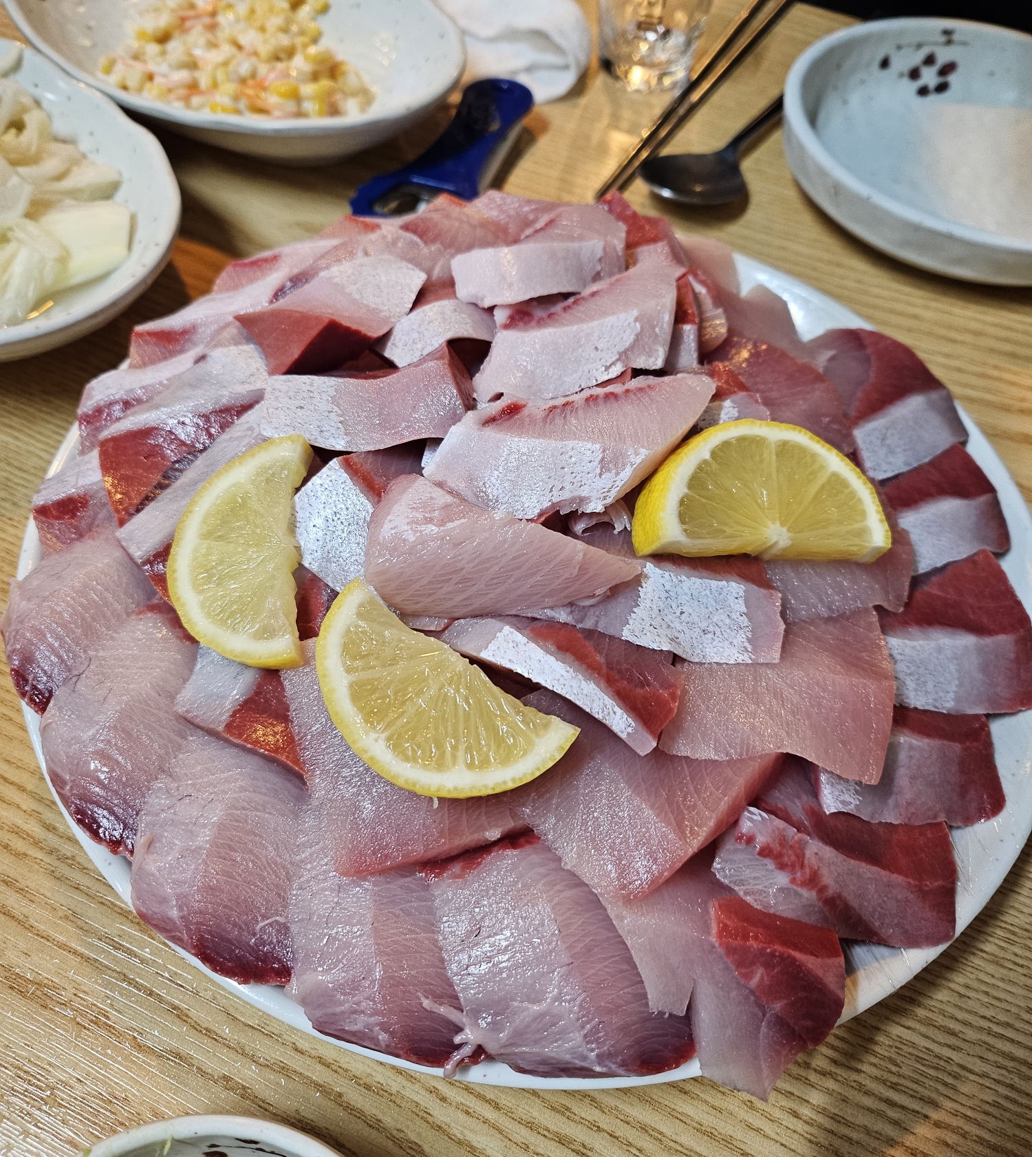 11월부터 2월까지 제철인 대방어. 방어 제철이 가기 전에 한번 더 먹어줘야겠다는 생각으로 밖으로 나와 영종하늘도시 근처 해산물 식당을 찾아다니다가 다른 곳에 비해 넓고 깔끔해보이는 횟집