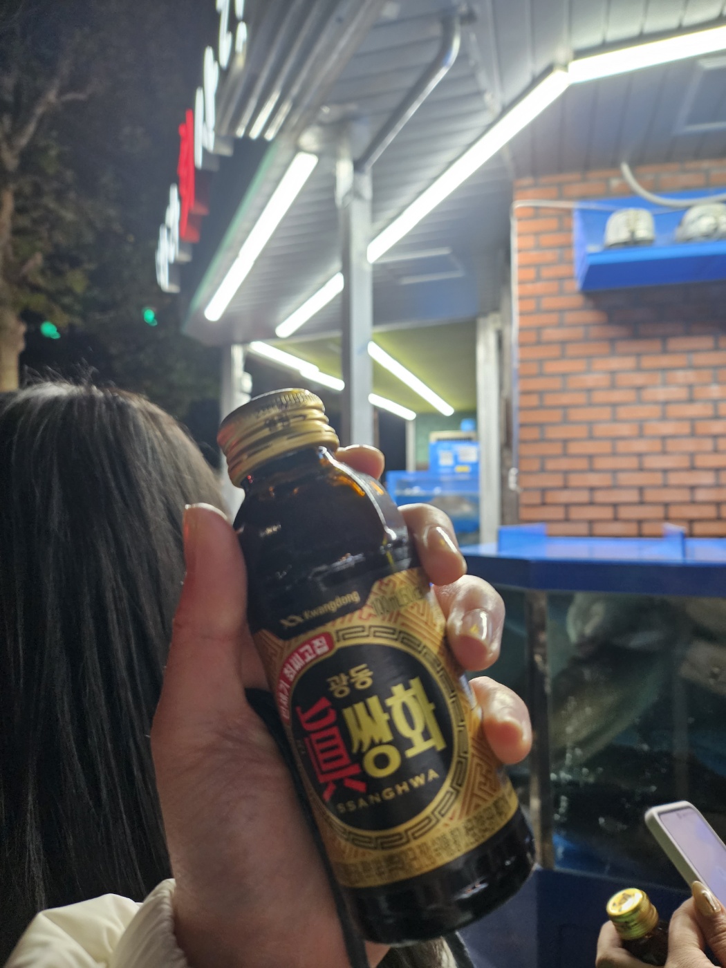 몸은 몸대로 다 얼었고 이 정도면 다음날 100% 몸살 올 거 같아서 바다회사랑 2호점 마중 편에 있는 편의점에서 쌍화탕을 사 먹었다. (진짜 단단히 입고 오십시오..)