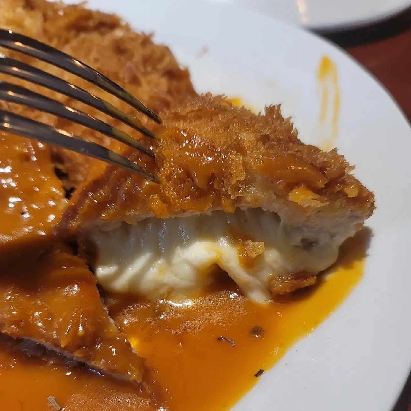 이집트 경양식의 인기메뉴인만큼 기대감을 가지고 나이프와 포크로 조심스럽게 썰어보았는데, 썰자마자 치즈가 폭포처럼 흘러내렸다. 100% 치즈를 사용한다는 이집트경양식.. 치즈를 너무 사랑하는 치즈덕후인데 치즈까스의 빈 공간 없이 치즈가 채워져 있어서 너무 좋았고, 적절하게 매콤한 소스 덕분인지 치즈가 많다고 하여도 느끼하거나 물린다는 느낌은 못 느꼈다. 왜 인기메뉴인지 알 것 같은 느낌..!