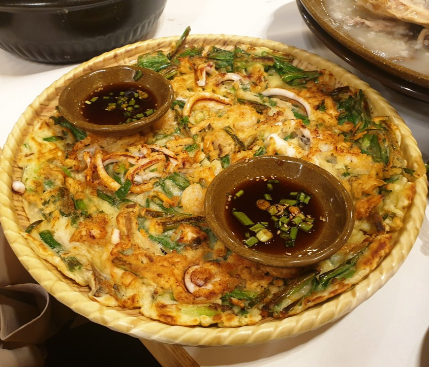 먹을 때 잘 익은 반죽에 쫄깃한 해산물 그리고 부추와 쪽파의 싱싱한 야채 씹는 소리가 어우러져서 다른 식당과 다른 특별하고 특이한 식감이 들어서 더욱 맛있게 느껴졌다.