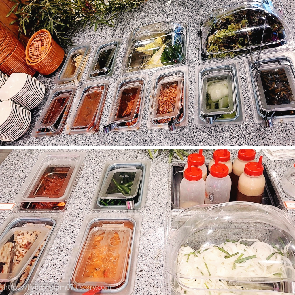 직원분 말씀대로 여러 가지 반찬들과 야채들이 깔끔하게 정리되어 나열되어 있었다.