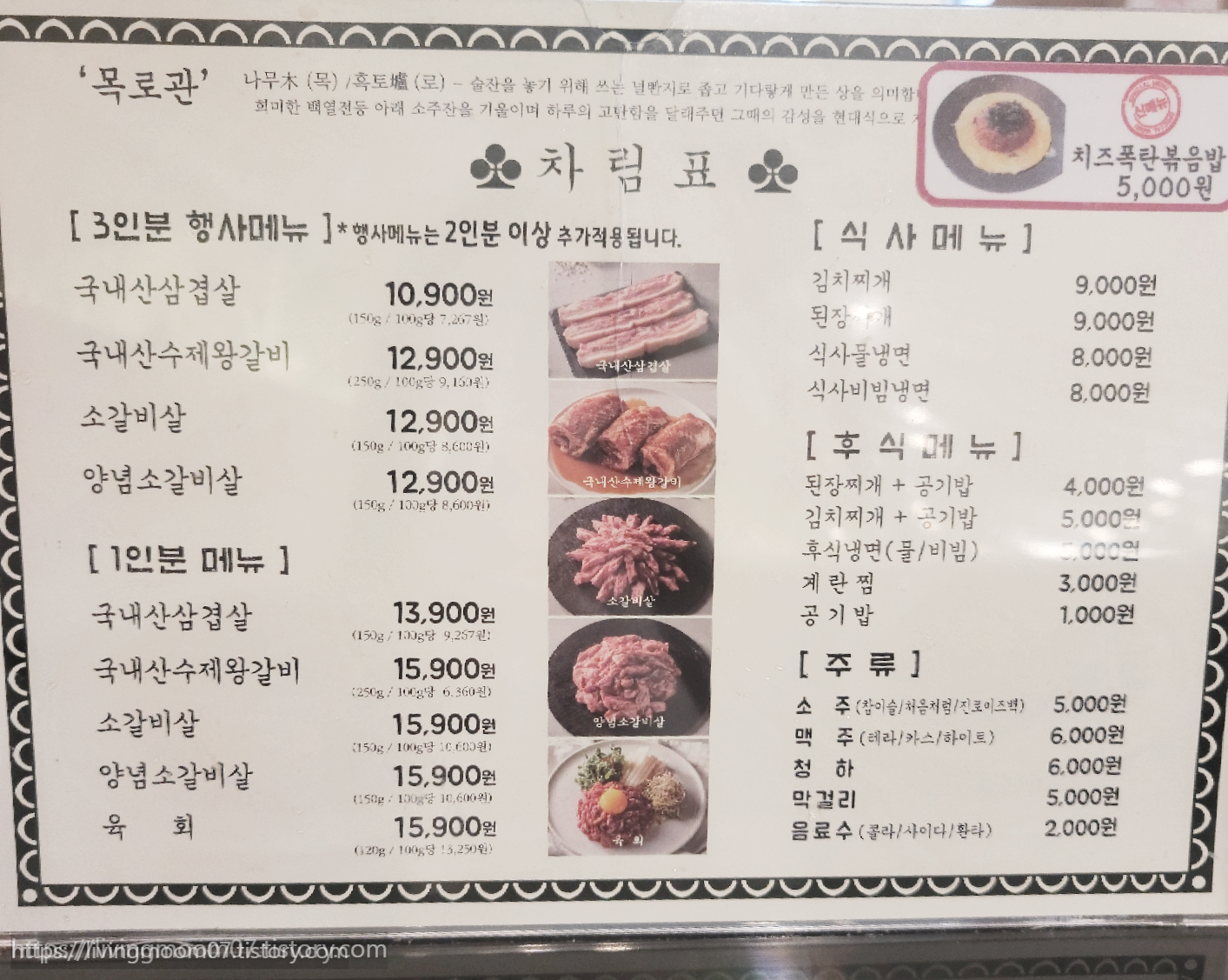 목로관은 3인행사메뉴도 있어서 2인분 가격의 3인분량을 알뜰하고 가성비 좋게 먹을 수 있는 가성비식당이다.