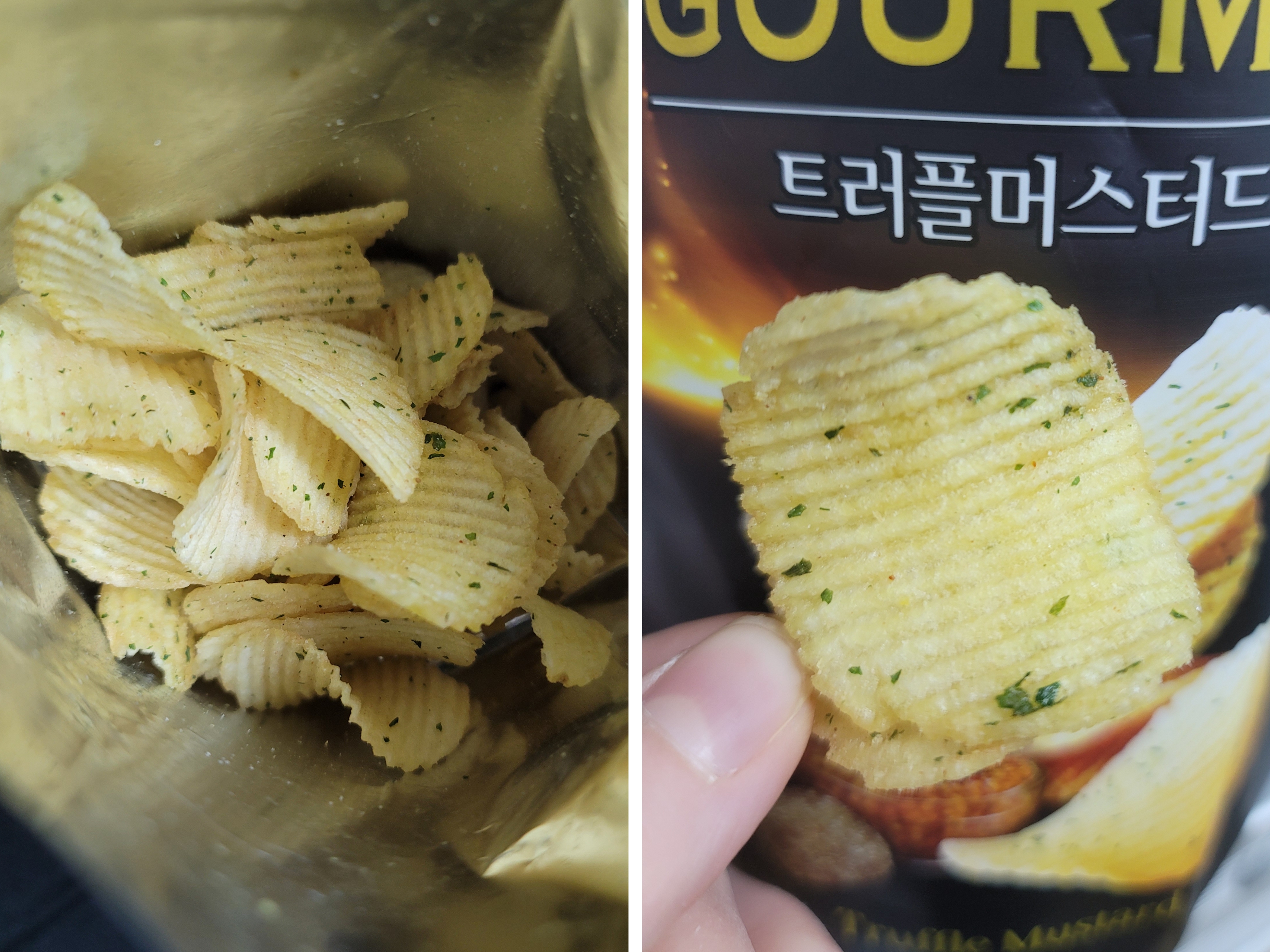 과자봉투를 열자마자 트러플의 향긋한 향과 고소하고 기름진 감자의 향이 어우러지면 퍼졌다.