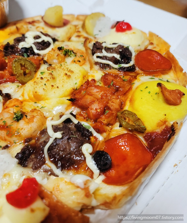 그 외 체다치즈피자, 쉬림프피자, 포테이토피자, 고구마피자는 특별한 무언가 없이 무난하고 우리가 흔히 아는 맛있는 피자의 맛이었다.